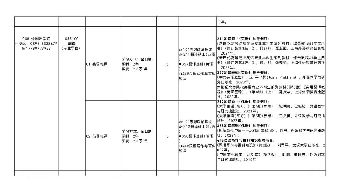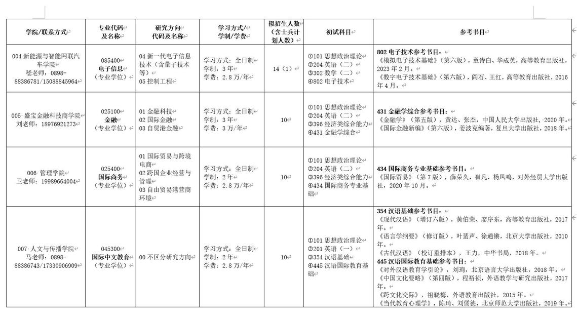 年硕士研究生招生专业目录及参考书目