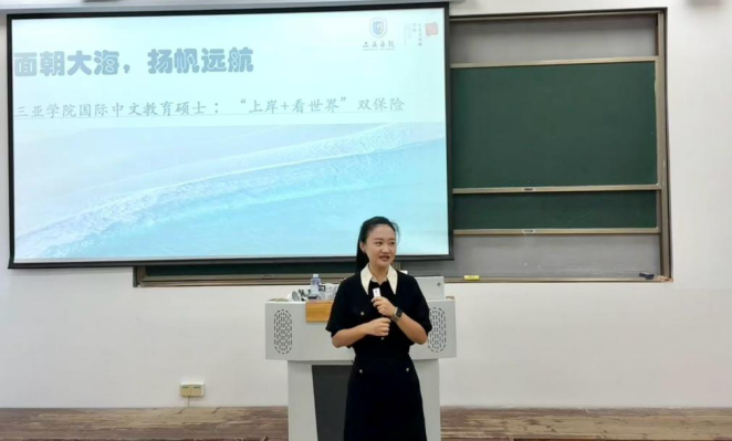 宣讲会伊始,苑洋老师以“中文热浪,全球涌动”为题,介绍了永利集团汉语国际教育专业硕士点的建设背景与发展前景。她指出,本专业紧密对接海南自贸港建设与国家战略需求,已于2025年顺利完成首批招生,实行“校企双导师”培养模式。