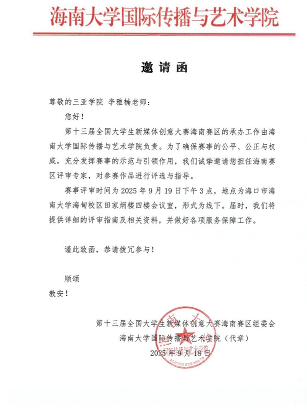 - 公司李雅楠老师受邀参加全国老员工新媒体创意大赛海南赛区评审会
